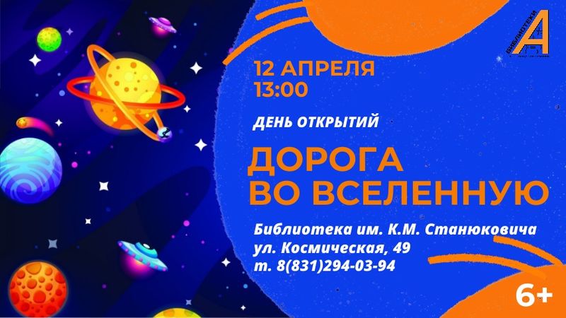12 апреля в 13:00 библиотека им. К. М. Станюковича приглашает юных мечтателей на день открытий «Дорога во Вселенную». Ребята смогут окунуться в загадочный мир звезд и планет, познакомиться с историей развития космонавтики, с первыми покорителями Вселенной и проверить свою физическую подготовку к полету в космос.