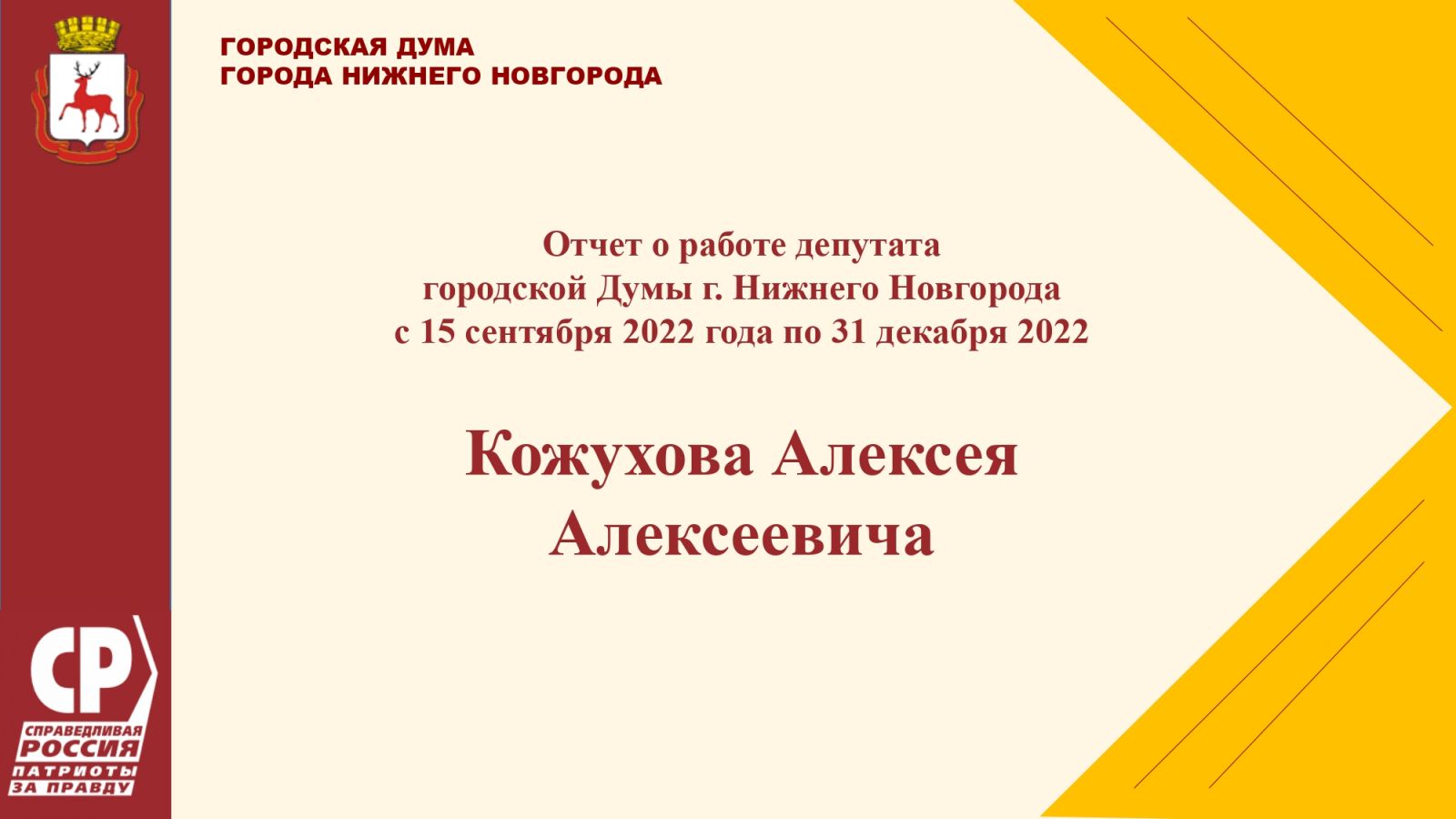 Ежегодный отчет о проделанной работе за 2022 год Алексея Кожухова, депутата городской Думы города Нижнего Новгорода