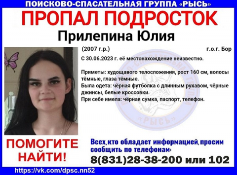 В день исчезновения девочка была одета в черный лонгслив, джинсы в тон и белые кроссовки, с собой взяла паспорт и мобильный телефон в черной сумке.