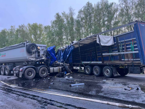 Напомним , авария с участием трех большегрузов, «Газели» и легковушки произошла в 17:10 1 мая у поворота к поселку Никольское. Там у прицепа фуры MAN взорвалось колесо, водитель потерял управление и выехал на встречную полосу, где врезался в автомобиль Kia Sportage. Кроссовер оказался на встречке, где его подмял «КАМАЗ», в который также врезалась Scania, а следовавшая за ней «Газель» съехала в кювет.