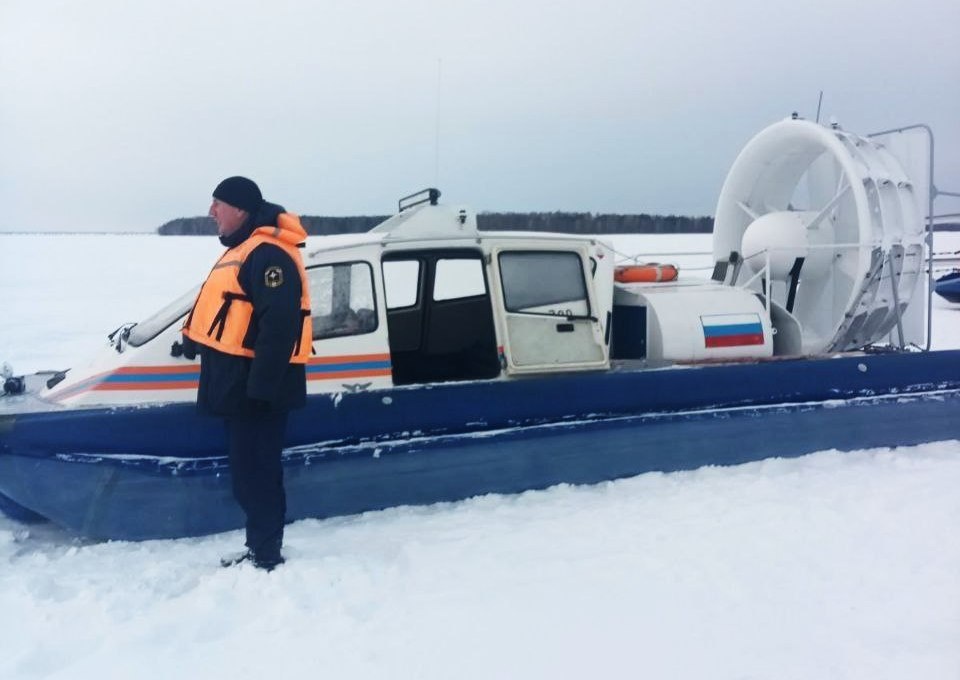Спасателям на катере на воздушной подушке «Марс 700» подошли максимально близко к месту провала и поднять мужчину на борт судна.