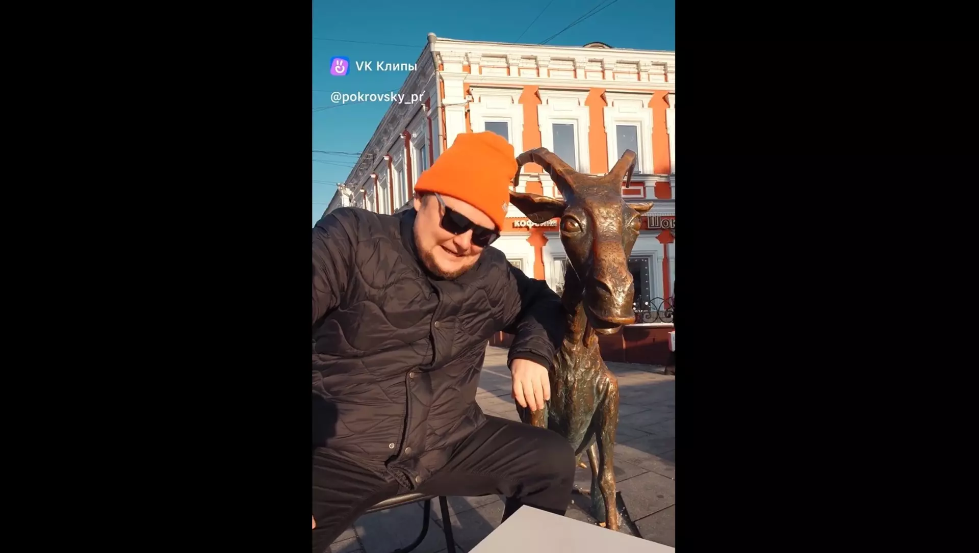 Местом для записи музыкального мини-клипа музыкант выбрал одну из самых узнаваемых достопримечательностей города — скульптуру «Веселая коза» на Большой Покровской улице.