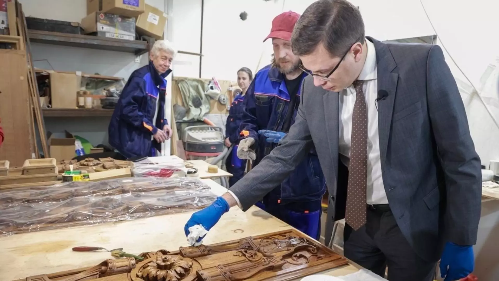 Особое внимание мастера уделили Белому залу, который больше всех пострадал от огня. Здесь буквально по кусочкам собирали и восстанавливали гипсовый декор. Параллельно в московском центре Грабаря реставрируют тканевые элементы интерьера для Бархатного зала.