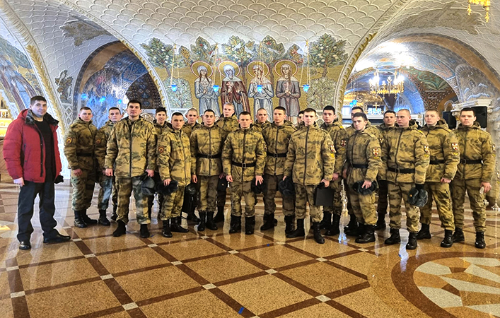 В Серафимо-Дивеевском монастыре сегодня побывали курсанты Новосибирского военного института имени генерала армии И. К. Яковлева нацгвардии РФ и Саратовского военного Краснознаменного института войск нацгвардии РФ. Они стажируются на командиров взвода и командиров отделений в воинской части 3274 в Сарове.