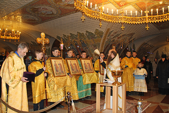 После праздничного богослужения духовенство, учителя и ученики с крестами, хоругвями и святыми иконами прошли по святой Канавке и прославили небесных покровителей монастырской школы.