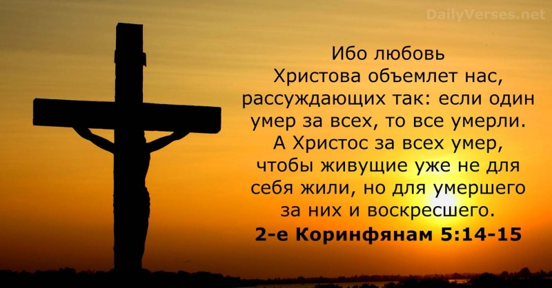 «Христос за всех умер, чтобы живущие уже не для себя жили, а для умершего за них и воскресшего».
