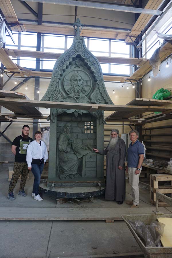 Архимандрита Тихона встречали генеральный директор предприятия «Лит Арт» Александр Устенко и Ирина Макарова. Она представила изготовленный макет памятника Патриарху Гермогену. Настоятель Печерского монастыря сделал несколько замечаний о небольших недостатках, которые тут же были устранены.