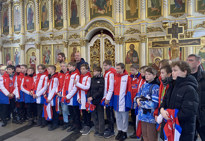 Сегодня в Православном приходе Церкви в честь иконы Божией матери «Скоропослушница», что на улице Люкина, прошел молебен. Службу провел отец Михаил, который благословил юных хоккеистов. Протоиерей Михаил Минюхин — председатель епархиальной комиссии по вопросам физической культуры и спорта. Присутствовал также президент ФХСМНО Вячеслав Геннадьевич Рябов.
