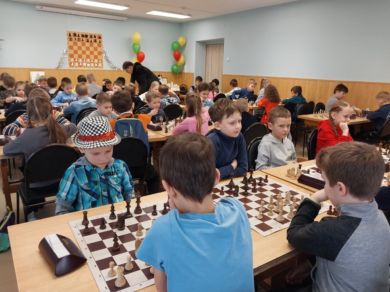 6 туров, быстрые шахматы. Играли 64 самых маленьких шахматиста в возрасте до 8 лет.