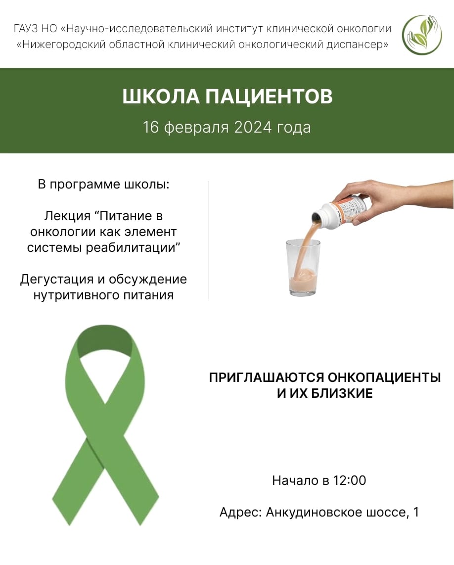 Приглашаем на Школу пациентов, которая состоится 16 февраля в 12:00 по адресу Анкудиновское шоссе, 1!