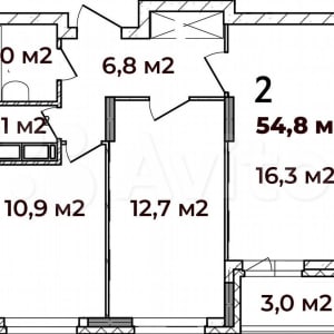 - Общая площадь: 54.8 м²