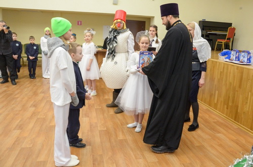 Духовники гимназии передали поздравление благочинного Воскресенского округа протоиерея Александра Долбунова первоклассникам и их классным руководителям и вручили сладкие рождественские подарки от Воскресенского благочиния.