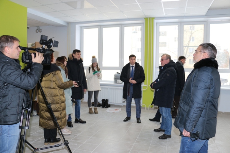Л. Бородулин: Готовность здания около 98%. Второй и третий этажи, санузлы, лестницы, полностью готовы. Учебное оборудование завезено, находится в классах, они закрыты. Благоустройство территории выполнено. Сейчас идут работы в спортивном зале. Внутренние работы в здании были глобальными, всю школу переделали, кроме столовой.