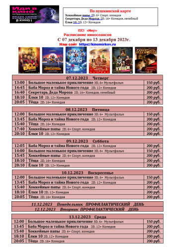 ККЗ "Мир" расписание с 07 декабря по 13 декабря 2023г.