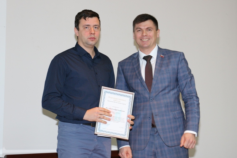 26 октября в ходе заседании думы состоялся торжественный момент — вручение наград. Председатель гордумы Сарова и заседания Антон Ульянов вручил Благодарственные письма троим представителям Молодежной Палаты при гордуме Сарова. «Первый созыв Палаты заканчивает свою работу 28 октября, поэтому сейчас мы благодарим за активное взаимодействие с Городской Думой города Сарова, общественными молодежными организациями города, за деятельное участие в социально значимых проектах, подготовку и реализацию собственных проектов на пользу Сарова», — сказал Антон Сергеевич. Городские награды адресованы председателю Молодежной Палаты Евгению Шестакову, членам Палаты Артему Гринину и Евгению Тихонову. Е. Шестаков в ответном слове поблагодарил депутатов думы: « Спасибо за то, что откликались на наши просьбы, посещали наши заседания, помогали разбираться в вопросах, которые возникали. Я с удовольствием посещал заседания комитетов, это был интересный и полезный опыт».