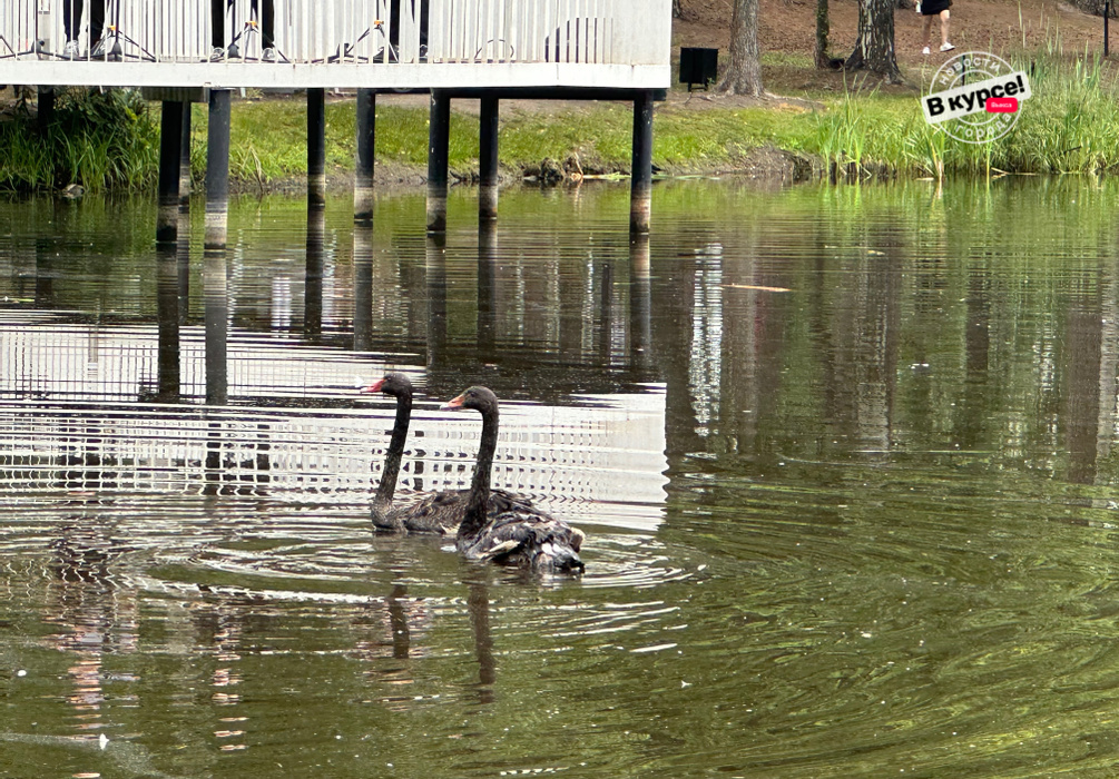 Двое черных лебедей стали новыми жителями озера Лебединка в парке.