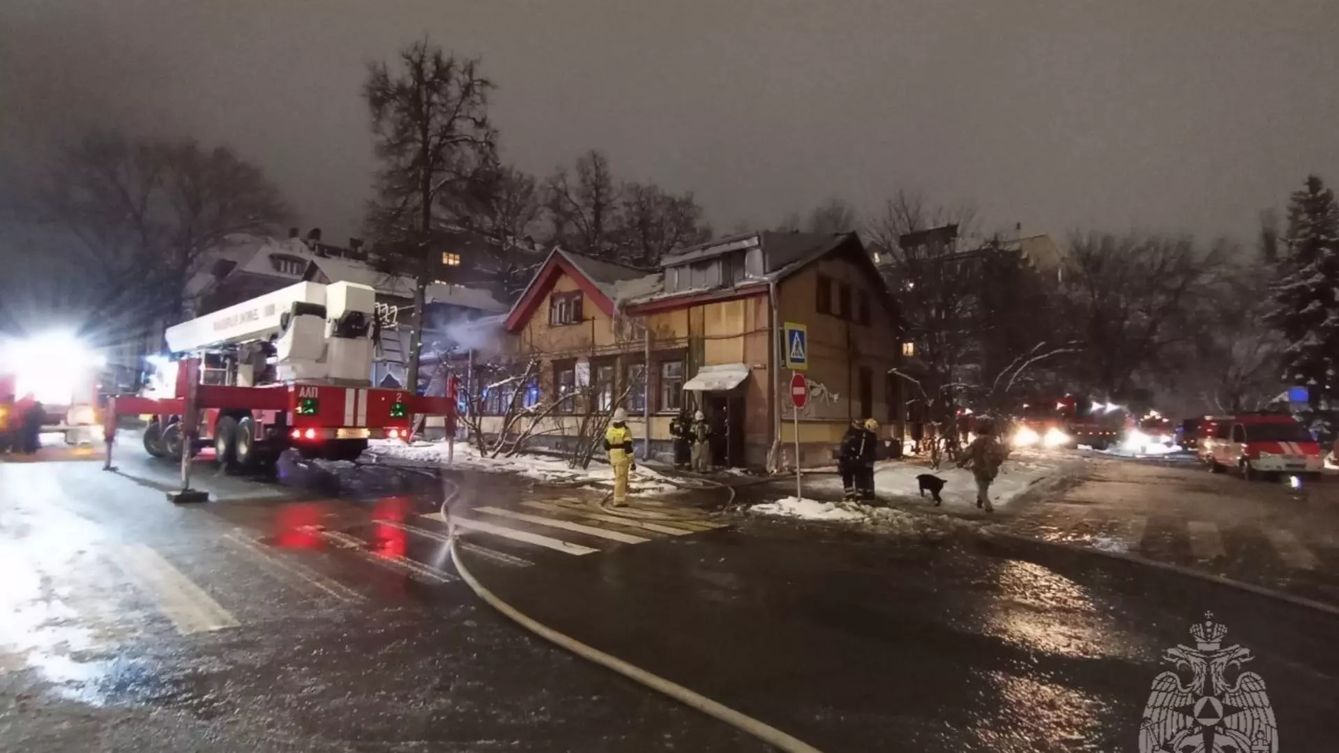 В МЧС сообщили, то огонь распространился на 250 квадратных метров. Из здания эвакуировали пять человек, детей среди них нет. В тушении участвовали более 60 пожарных.