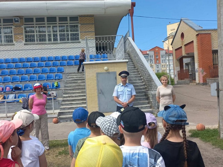 Командир отдельного взвода ДПС ГИБДД МУ МВД России по ЗАТО г. Саров старший лейтенант полиции Аношин А.С., совместно с инспектором ОИАЗ ОГИБДД МУ МВД России по ЗАТО г. Саров Пичугиной Ю. И. провели инструктаж воспитанников, а также игру, в ходе которой: