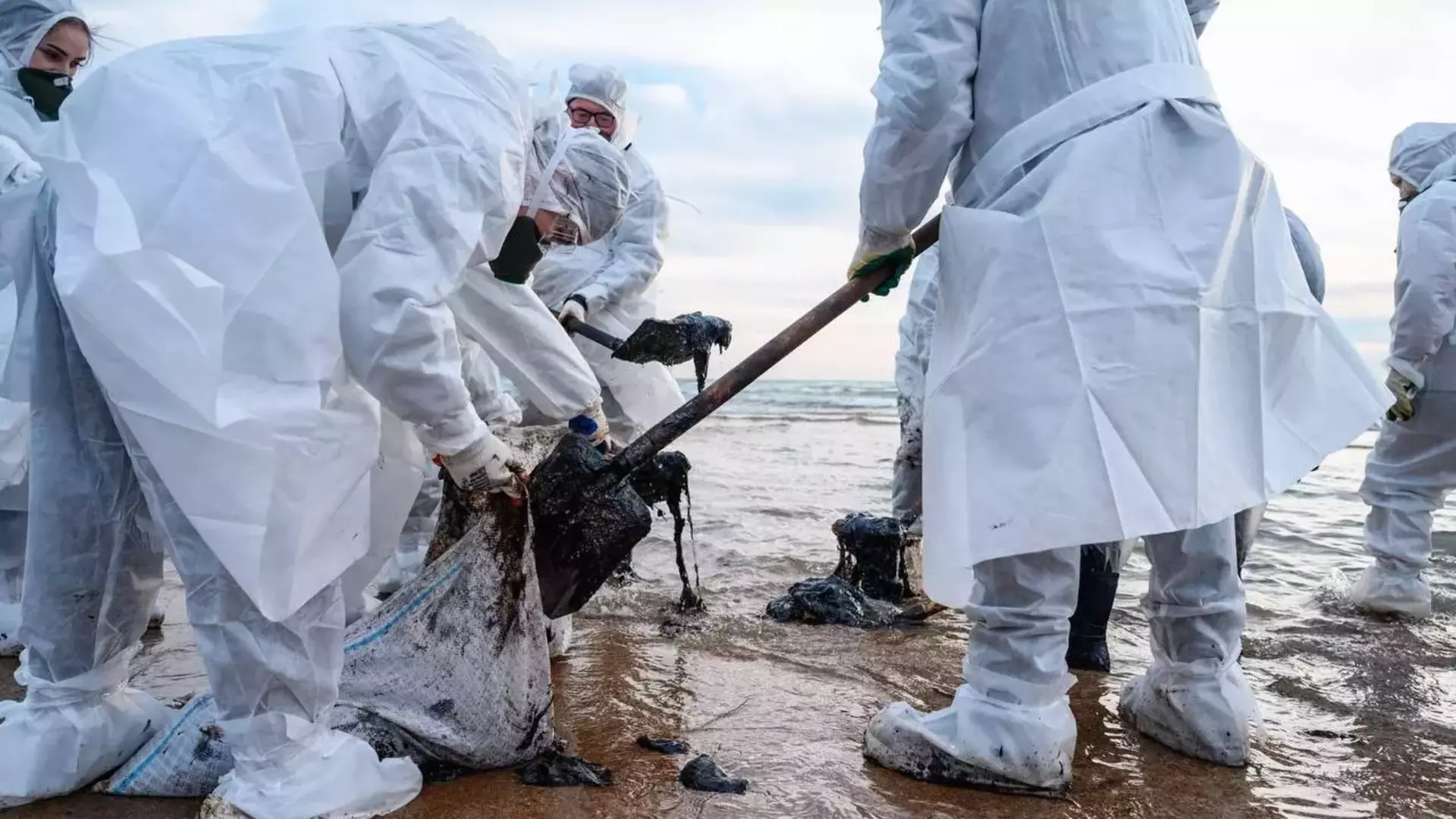 За рабочий день с берега было убрано порядка 1500 тонн нефтяных продуктов вперемешку с песком. До полигона самосвалами доставлено около 750 тонн. Также было подготовлено основание под укладку дорожных плит.